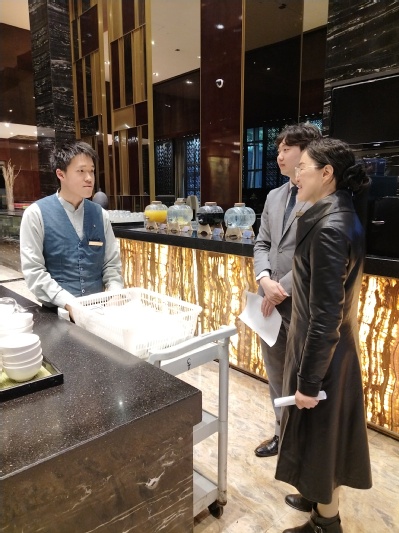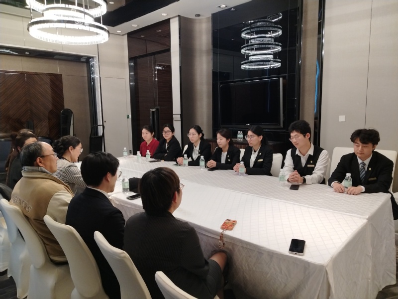 下午1时30分,调研组抵达静安洲际酒店。作为学院深度合作企业,洲际酒店不仅承接学生认知实习、专家论坛课程,更在校企共建“订单班”、推动“2+1”人才培养模式方面积极探索。调研中,酒店相关部分负责人介绍,一名去年7月入职的学生,仅用半年时间便成长为五楼中餐厅领班,成为校企协同育人的生动注脚。